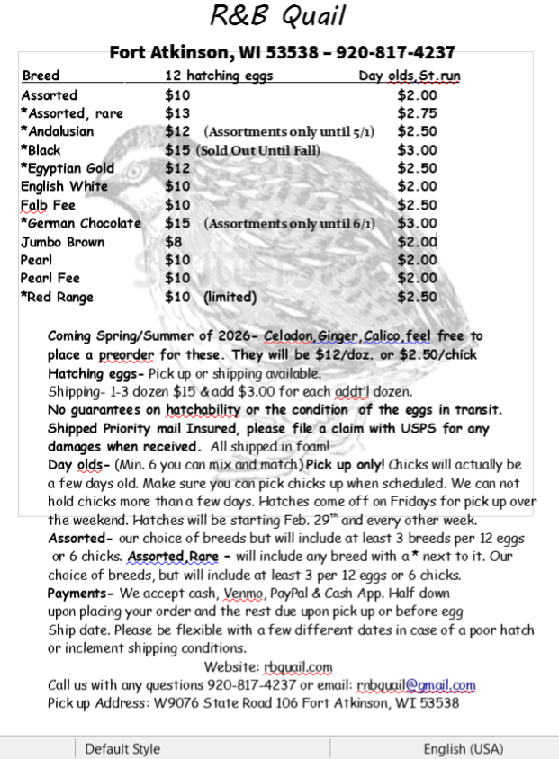 Quail Breeds & Availability